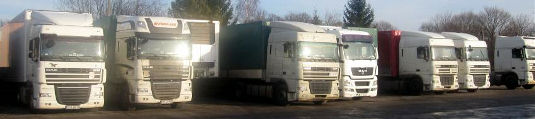 We possess a modern fleet of vehicles which fulfill requirements of standards on road traffic safety and ecology: EURO 5, EURO 6; trailers with canvas top and refrigerated trailers.